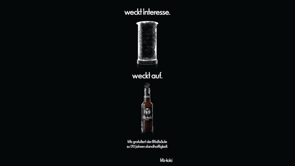 Am 1. Juli ist Tag der Litfaßsäule – vor 170 Jahren erhielt der Verleger Ernst Litfaß die Genehmigung für seine Anschlagsäulen und stellte im Jahr darauf am 1. Juli 1855, die ersten Litfaßsäulen in Berlin auf. Die Kampagne von fritz-kola zeigt eine übergroße Litfaßsäule mit der Headline “weckt interesse.” und eine ebenso dominante fritz-kola mit […]
