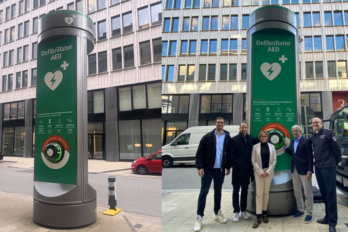 Ströer arbeitet für ein Pilotprojekt mit den Herzrettern aus Hamburg und Medical Industrie zusammen und hat erstmals einen Defibrillator in einen digitalen Medienträger im öffentlichen Raum eingebaut. Dafür konzipierte Ströer eigens eine geeignete Säule, die nun in der Straße Großer Burstah steht und für Passant:innen jederzeit frei zugänglich ist.