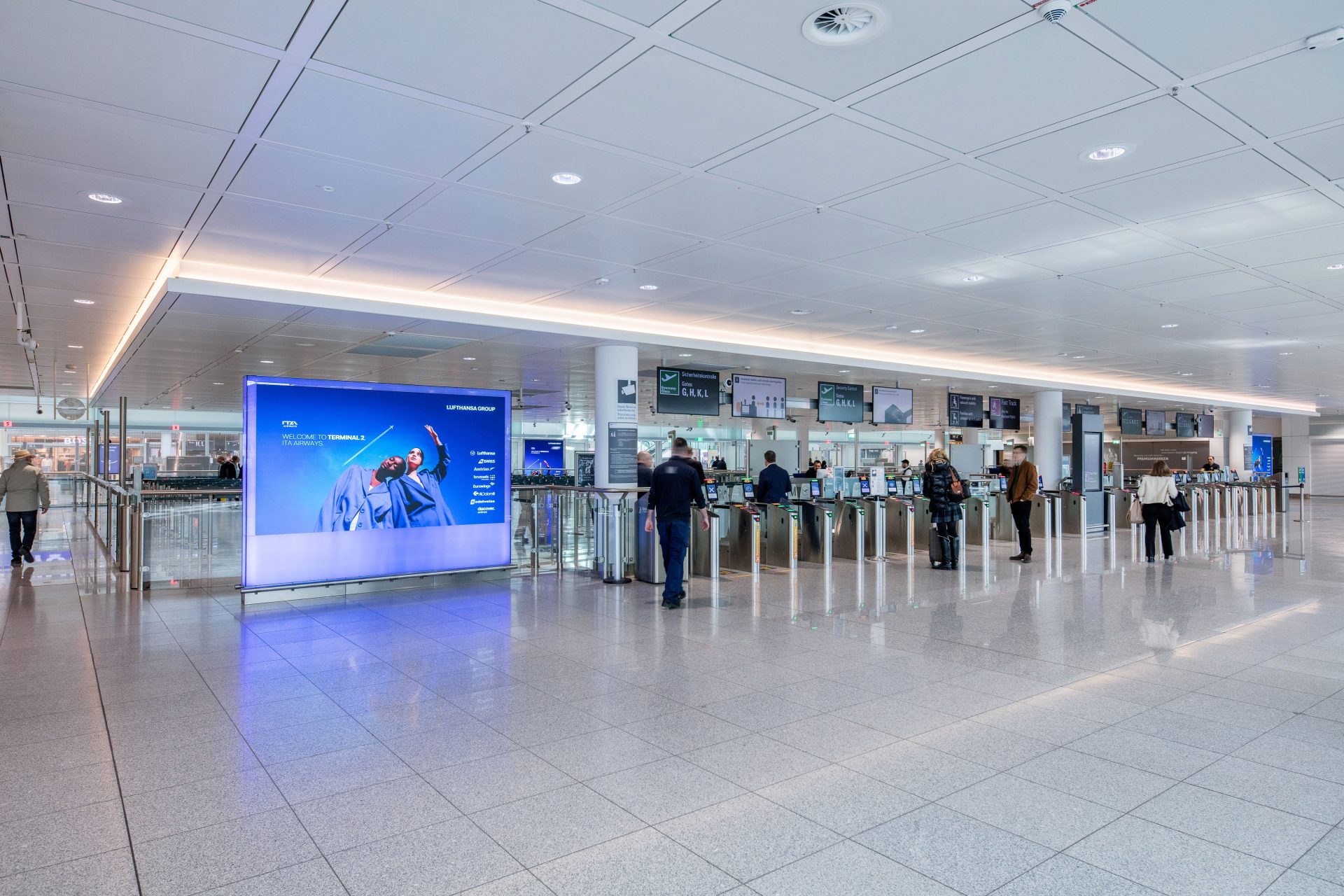 An Terminal 1 wurden Take-Off Boards bereits eingeführt, nun erweitert der Flughafen München sein digitales Werbeportfolio auch auf den stark frequentierten Bereich im Terminal 2. Lisanne Oschwald, Leiterin Airport Media am Flughafen München, erklärt: “Die Sicherheitskontrolle im Terminal 2 ist ein zentraler Touchpoint für alle abfliegenden Passagiere – mit enormem Potenzial für Marken. Wer hier wirbt, kann gar nicht übersehen werden.”