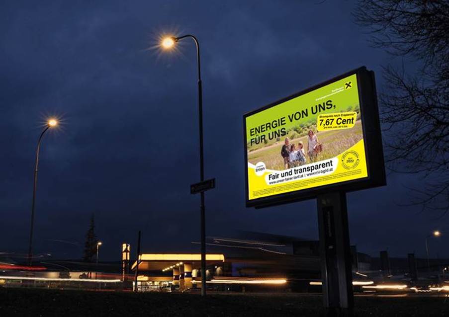 Die Kombination aus klassischer Plakatwerbung und digitalen Posterlights ermöglicht maximale Reichweite im Burgenland. Der Strom der Genossenschaften stammt überwiegend aus Photovoltaik, ergänzt durch Kleinwasserkraft und Windenergie. Aktuell zählen die Raiffeisen Energiegenossenschaften im Burgenland mehr als 11.300 Zählpunkte.