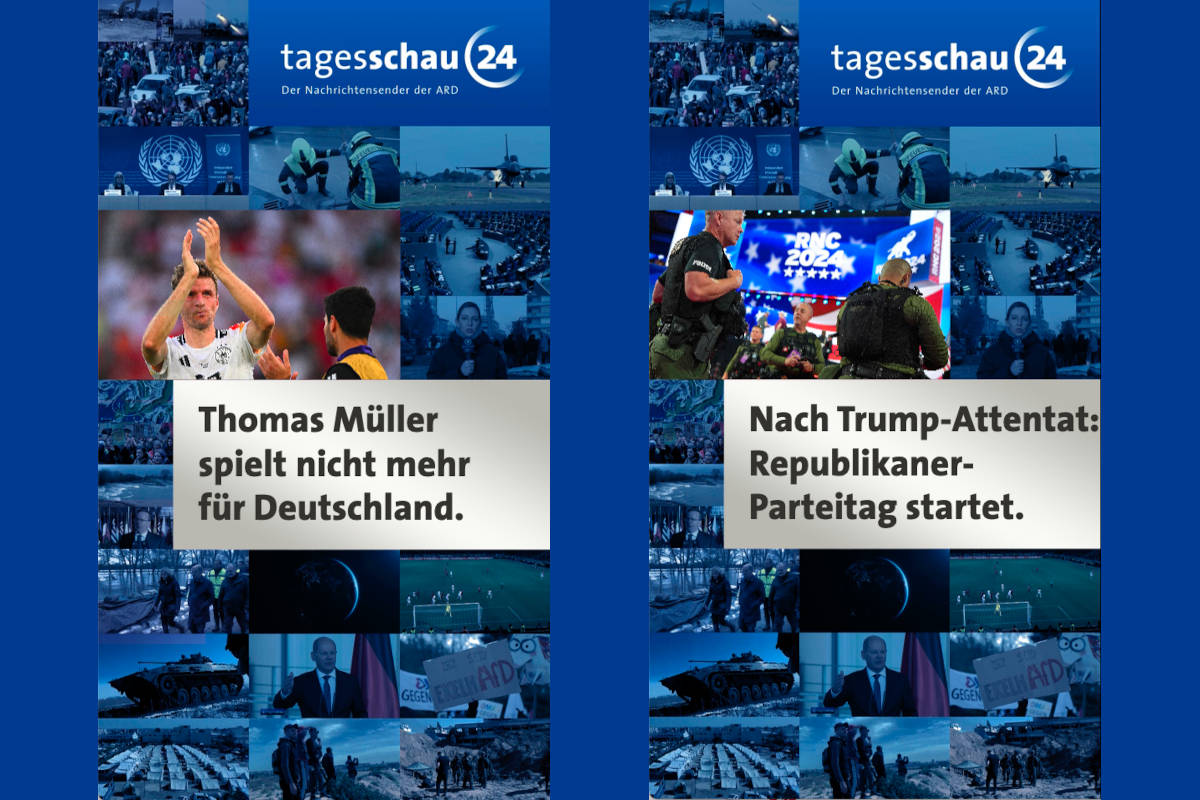 Tagesschau24 speist für eine aktuelle DOOH-Kampagne die Motive mit tagesaktuellen News-Ereignissen. Konzipiert und produziert wurde die Kampagne von der Digitalagentur la red, die sich in einem Pitch durchgesetzt hatte. Die Kampagne setzt auf TV, DOOH, Display, Search und ein Info-Angebot auf der Landingpage des Senders.