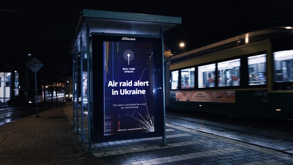 Die Kampagne greift auf Daten der offiziellen ukrainischen „Air Alarm“-App zu, die Warnungen aus sechs großen ukrainischen Städten erfasst und löst jedes Mal, wenn eine Sirene ertönt, sofort Botschaften auf den digitalen Bildschirmen aus: Die Kinder in der Ukraine brauchen weiterhin Unterstützung. Zusätzlich wird eine Mobile Pay-Nummer für Spenden angezeigt.