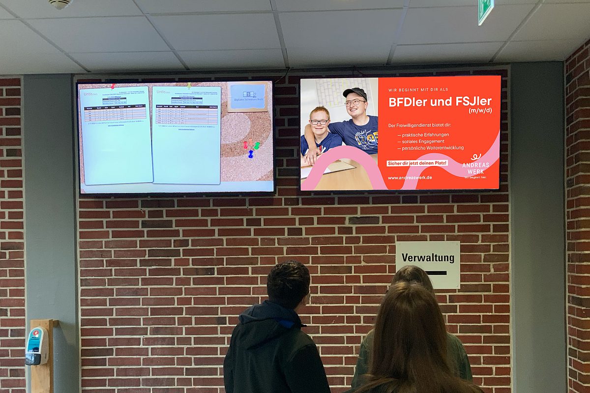 Was der Aufmerksamkeit hilft: Die Karriere-Spots werden neben schulinternen Informationen, wie etwa den Vertretungsplänen, ausgespielt. Anders als die Inhalte, die dooh.eu als klassischer Vermarkter an 1700 Standorten anbietet, sind die in den Schulen nicht programmatisch buchbar. „Wir möchten sicherstellen, dass wir keine klassischen Werbespots ausstrahlen. Es handelt sich bei den Karrieremonitoren um ein DOOH-Netzwerk, in dem ausschließlich ausbildungs- und berufsbezogene Spots ausgespielt werden dürfen“, sagt Baran und klassische Werbung sei in diesem Umfeld eben nicht zulässig.