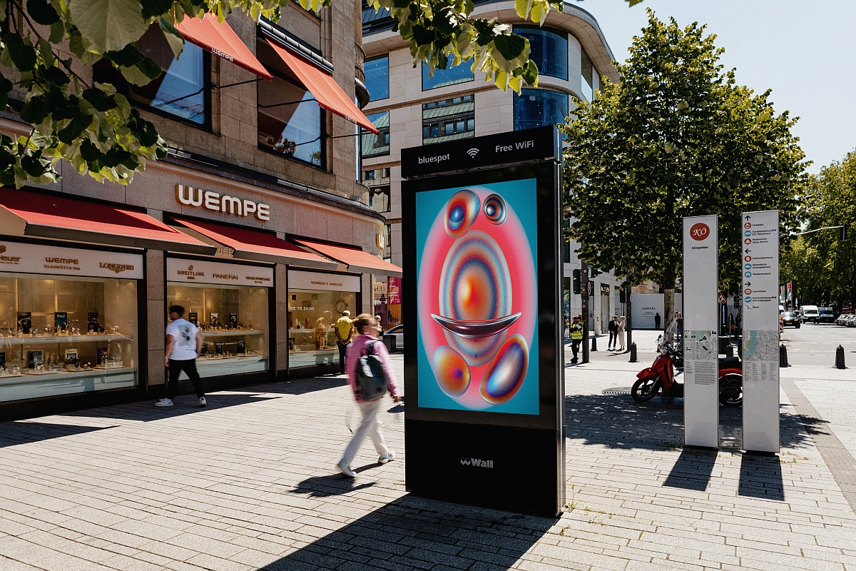 In Kooperation mit dem Kunst- und Designstudio OBJ bringt WallDecaux in diesem Jahr bereits zum 2. Mal die Werke digitaler Künstlerinnen und Künstler auf seine Screens, unter dem Motto „DOOH Exploration“. Auch positive Botschaften finden Einzug in das Medium. „Wir spielen mit dem Medium, testen Grenzen, verwandeln unser Inventar in lebendige Leinwände und vereinen die urbanen Landschaften mit digitaler Kunst“, erklärt Jicky von Bechtolsheim. Und das sei wichtig, denn gerade die digitale Kunst hat es oft schwer, gesehen zu werden – vor allem von der breiten Masse. Auch Werbungtreibende profitieren, denn Spots sind ebenfalls zu sehen. In einem positiven Umfeld, das garantiert Aufmerksamkeit bekommt und das jedem gefällt. Das bestätigt auch eine begleitende Befragung von WallDecaux, nach der gerade jüngere Zielgruppen von der Kunst im öffentlichen Raum begeistert sind.